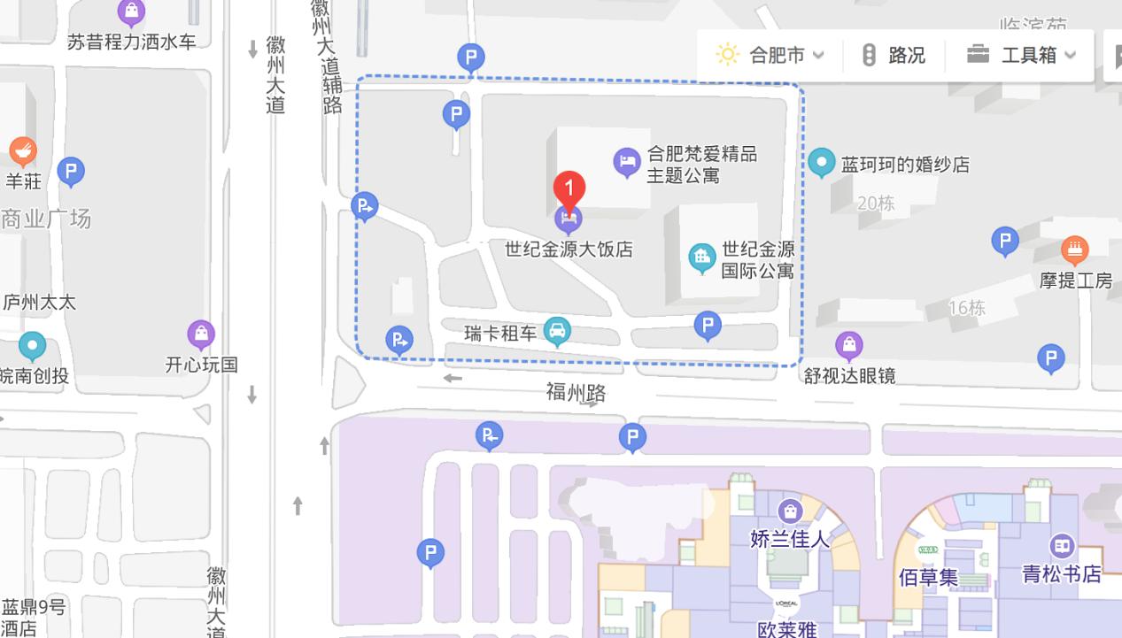 会议地点:合肥市滨湖新区徽州大道5558号世纪金源大饭店会议导航图: