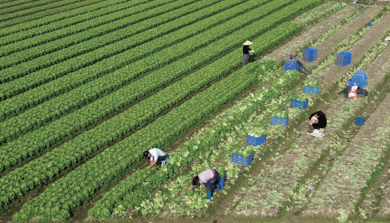 图为近日,贺州市八步区江南街道厦良村农民在采收生菜。